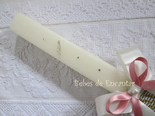 Vela artesanal com 30cm de altura no modelo quadrado, decorada com cordão de cetim, pombinha do Divino Espirito Santo e argola em prata de lei com contraste e gravação.