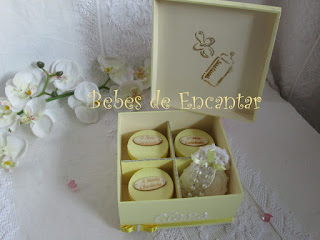 mente, aplicação de base com anjinho em chacota, meias perolas, fitas de cetim na cor escolhida e dedicatória no interior.